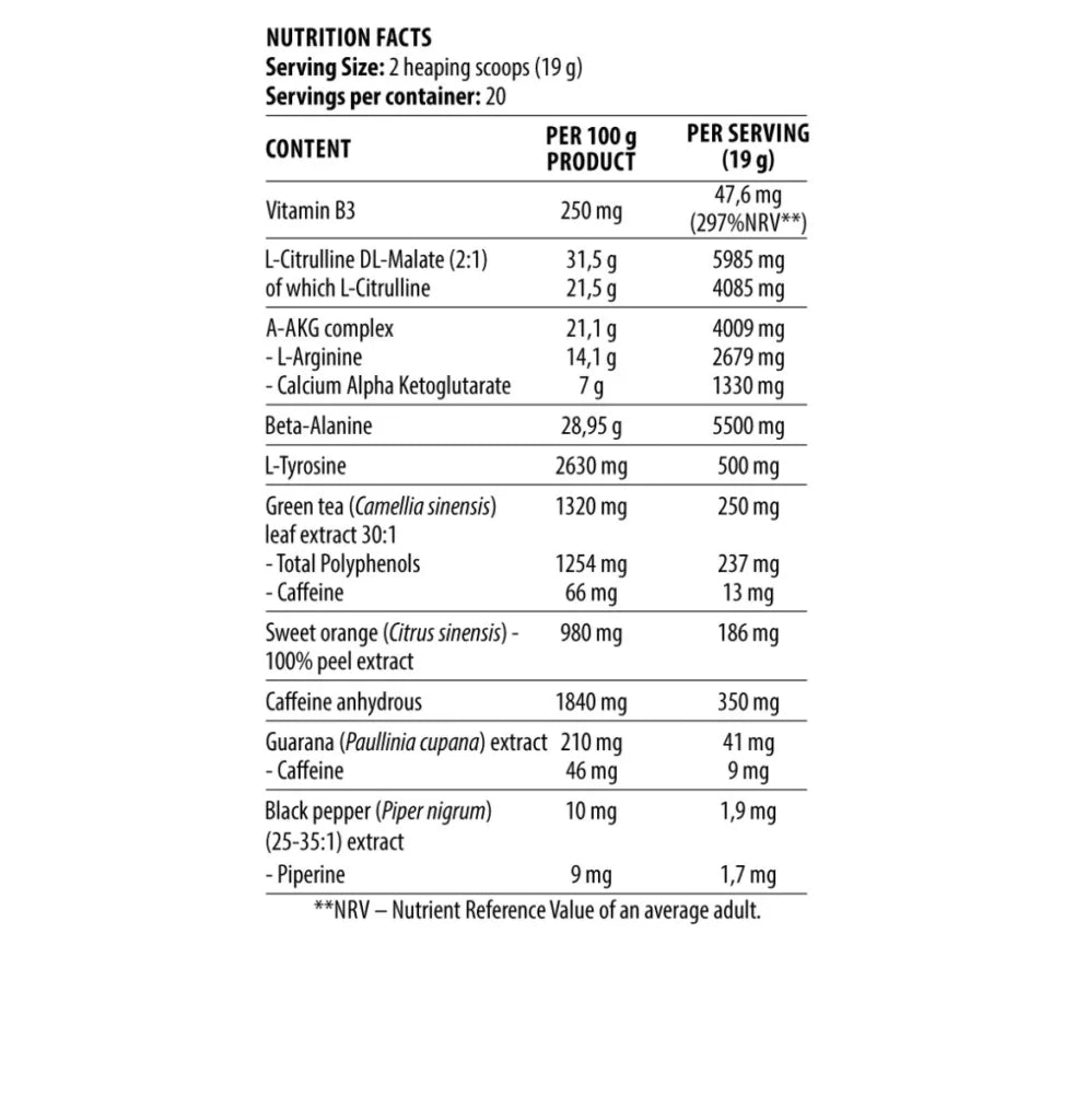 Blood & Guts van Dorian Yates is een krachtige geconcentreerde Pre-Workout, voor iedereen die zijn training naar het volgende niveau wil brengen! Blood & Guts van Dorian Yates eigenschappen: Blood & Guts van Dorian Yates is een unieke pre workout en bevat o.a. Vitamine B3, L-Citruline, een AAKG Complex, L-arginine en Beta-Alanine. Kortom een perfecte formule om jouw training een boost te geven! Wil jij ook het maximale uit je training halen? Wacht dan niet langer en bestel nu de Blood & Guts van Dorian Yates veilig en snel